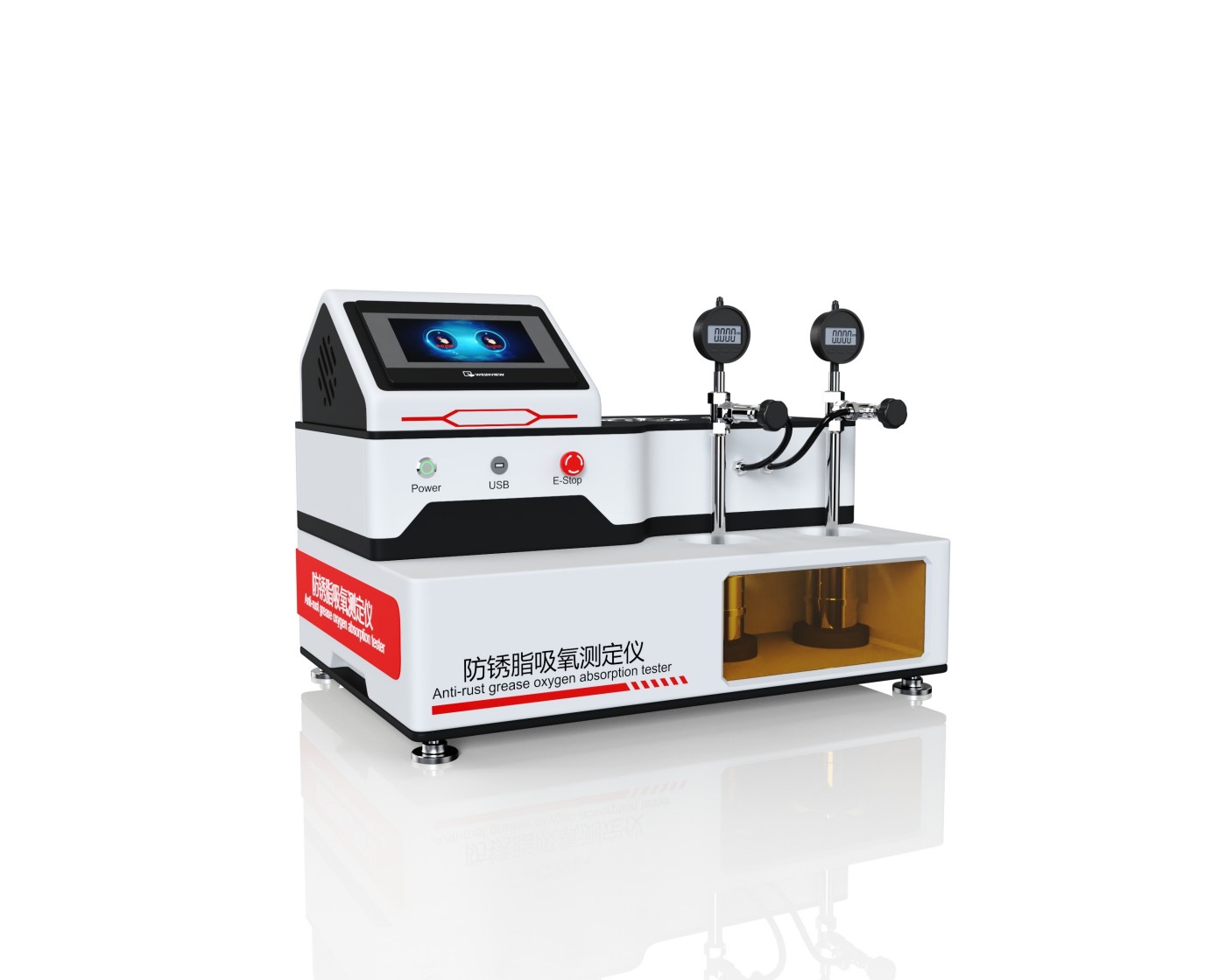 防锈脂吸氧测定仪是一种模拟高温高压环境下防锈脂氧化过程的实验设备,用于评估防锈脂及防锈润滑脂在特定条件下吸氧的程度。其核心功能是通过测量防锈脂在密闭氧弹中氧化时氧气压力的变化,量化评估其吸氧程度,从而反映防锈脂的氧化安定性及防锈性能,广泛应用于石油化工、航空航天、汽车制造等领域。